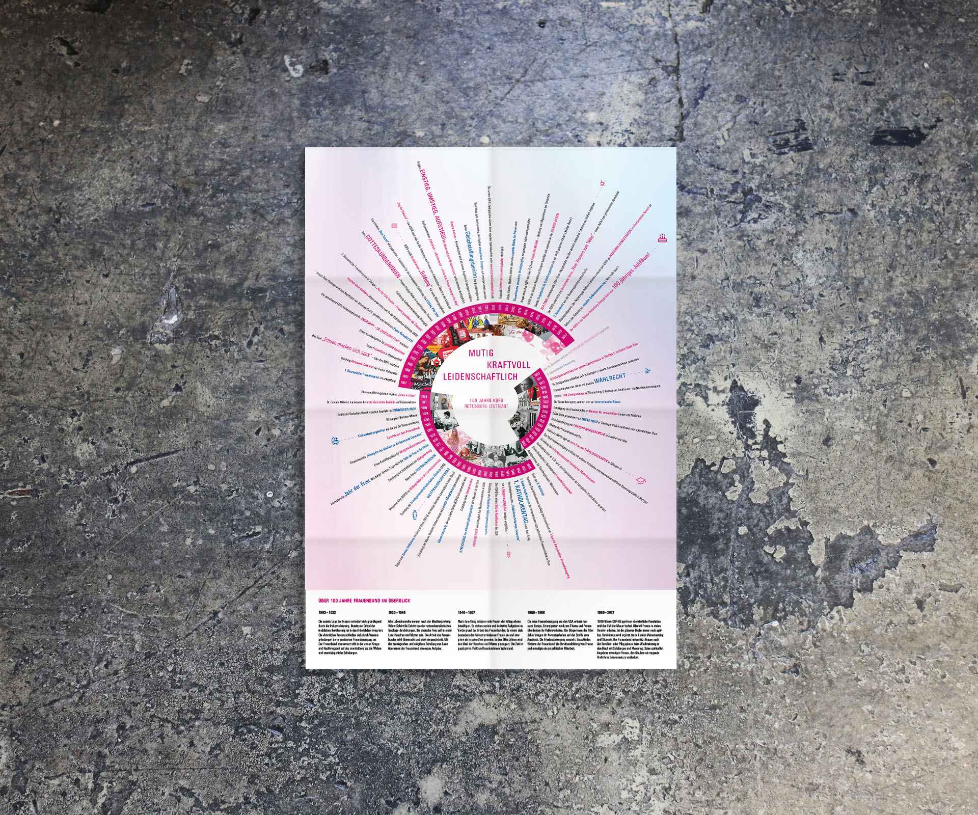 Dazu entwickelten wir eine moderne, bildstarke Gestaltung in Form eines Imageflyers mit Zeitleiste, Einladungskarten und weiteren Werbemitteln für die Jubiläumsveranstaltung.