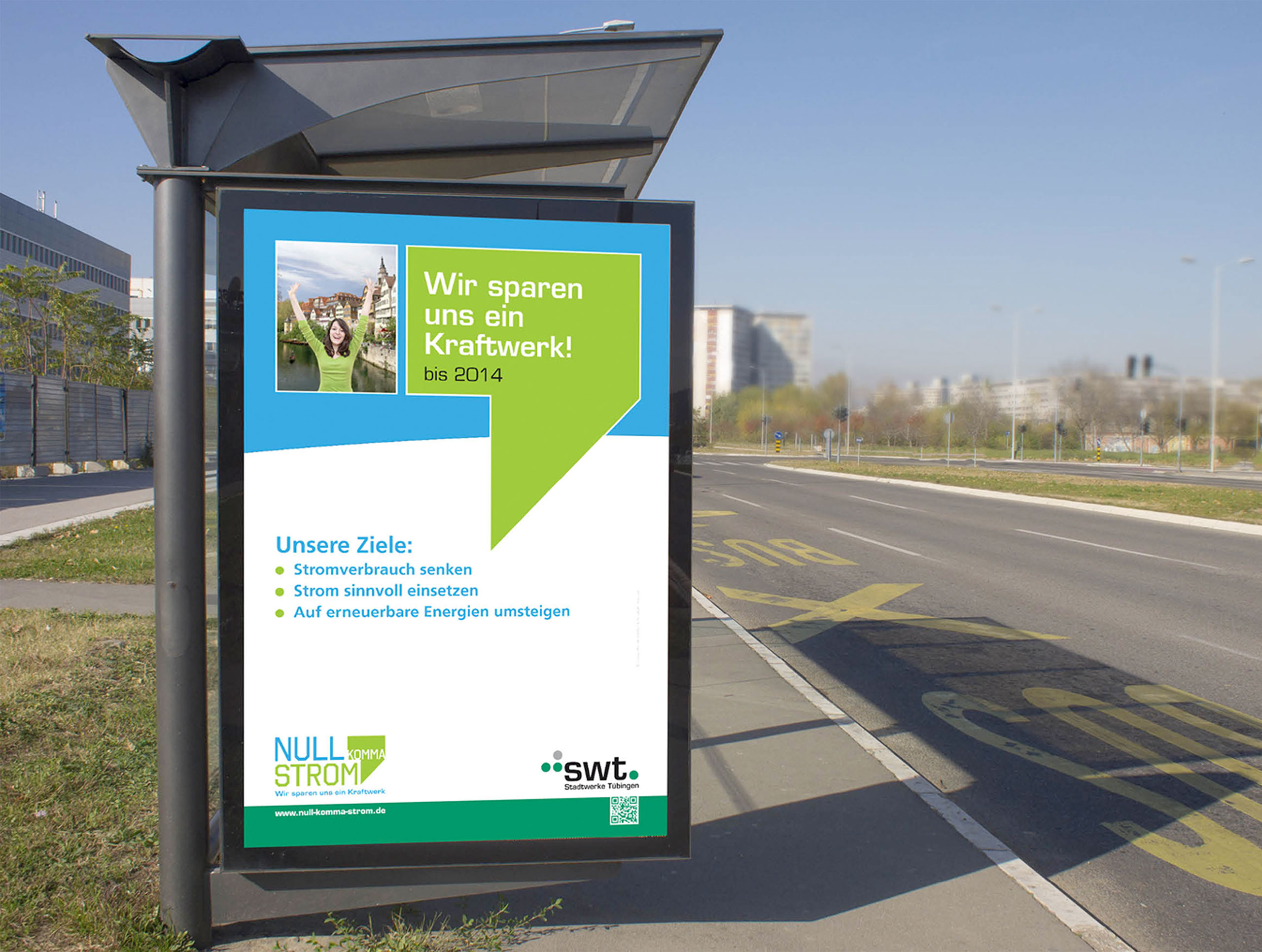 Mit der Kampagne soll das Bewusstsein für sinnvollen Stromverbrauch im Alltag geschärft werden. Durch die Entwicklung einer emotionalen und mobilisierenden Umsetzung vom Naming über das Logo bis hin zur Website motivieren wir Menschen und Unternehmen der Region, umzudenken.